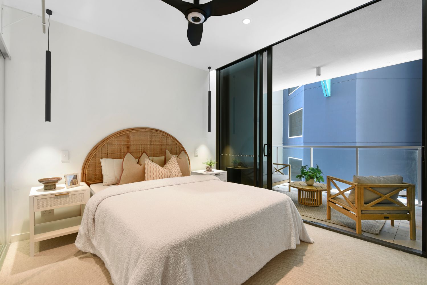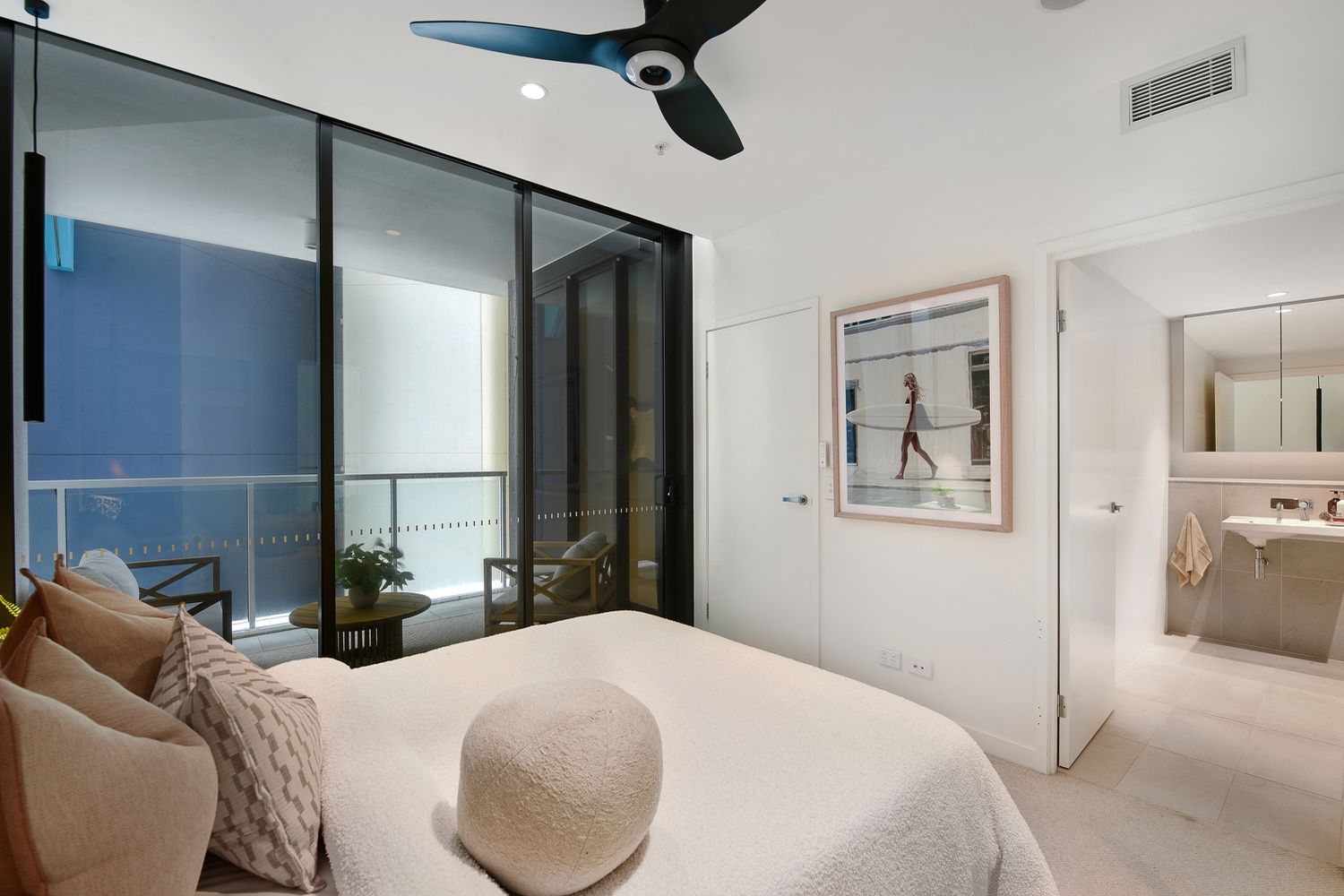 Tranquil Bedrooms: Two beautifully appointed bedrooms offer a calm retreat, enhanced by coastal tones and the soothing sound of nearby waves.