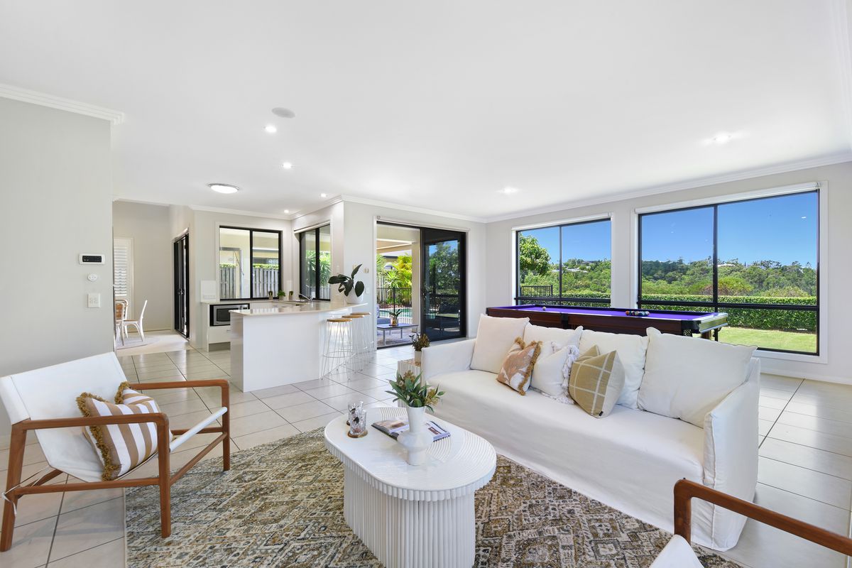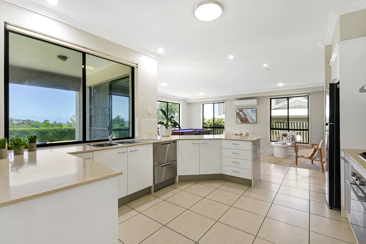 Set on an elevated block adjoining a tranquil bush reserve, the home enjoys sweeping views across the skyline towards Surfers Paradise while maintaining a peaceful and private setting. Designed with flexibility and family functionality in mind, the residence delivers multiple living zones, generous proportions and seamless indoor to outdoor connection.